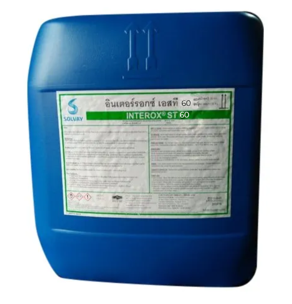 INTEROX®ST-60 is a hydrogen peroxide solution used in a wide range of applications in pulp and paper, chemical, textile, environmental, metallurgy, industrial and institutional applications.