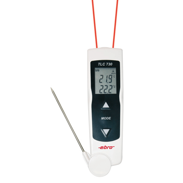 | Точность инфракрасного датчикаТочность проникающего зонда | ±4°C при -50°C … -30,1°C ±2,5°C при -30°C …18,1°C ±1,5°C при -18°C … -0,1°C ±1,0°C при 0°C … +65°C ±2,0°C или 2% при +65°C … +350°C ±0,8°C при -18°C … +120°C ±1°C (1%) для остального диапазона измерений (большее значение допустимо)  |
