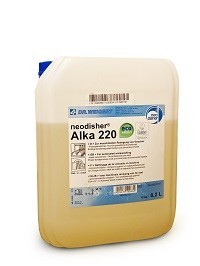 neodisher® Alka 220 – жидкое интенсивное моющее средство для посудомоечных машин. Высокая моющая способность в сочетании с хорошей отделяющей способностью, позволяет быстро размягчать и удалять пищевые остатки.